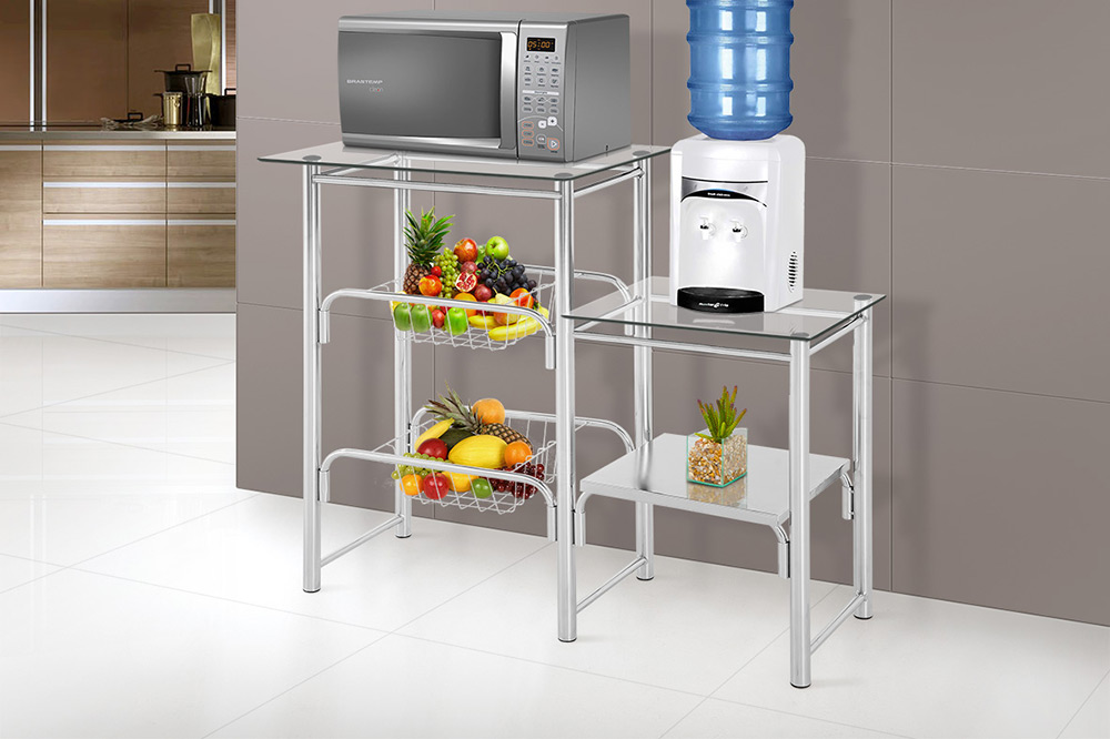 MESA P/ MICROONDAS E BEBEDOURO CROMADA - REF 025